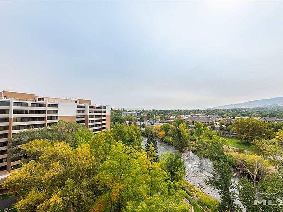 Unit #1295 on tenth floor with lots of light and cross ventilation. This private and quiet building feels spacious and secure. Unit is offered unfurnished except for all appliances including washer/dryer in unit. Floors are ceramic tile. Utilities (water, trash, sewer, heat/ac) included in rent with electricity, internet, or phone being the tenants responsibility. Truckee River frontage/vista with private grounds for this 11 story condo building including pool and exercise room. 24hr security key access building/garage and a walk score of 75 and bike score of 78. Hear river flowing from terrace with a South view. Bedroom windows face North and view Reno downtown skyline and Peavine Mtn. Urban location in a park setting. This is a quiet exclusive condo mostly owner occupied. Property has exercise room, BBQ area on shore of river, private party room for use by residents, 9 foot+ ceiling heights, large lighted closets, storage room on level 3, and well located two parking spots on drive in level 2 in a security garage. No smoking. Will consider shorter or longer rent period but no less than 6 months. Applicants are considered in the order in which their fully complete applications are received. Tours should be available late October and it will be posted here when tours are available. Current tenant moving out in late October so will offer reduced rent for a November or December 2022 move in i.e. up to a $1000/month pro rata rent reduction give back when coupled with the normal one year (or longer) lease at the $2250/month rent. Note that renters insurance is required along with agreement to follow all rules and regulations of the HOA.