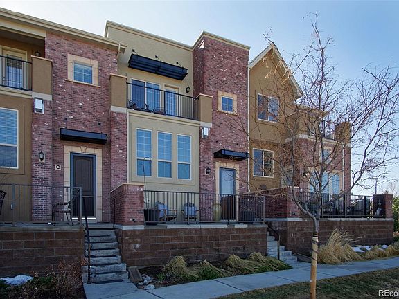 Panoramic Mountain Views! Stunning Views of the mountains and city from this immaculate, executive style brownstone in the heart of Highlands Ranch Town Center. Enjoy the lifestyle of being a block from patio style restaurants, Civic Park Entertainment, Boutique Shopping and an abundance of open space and miles of trails! This townhome offers an open style floor plan with extensive, rich hardwood floors throughout the main level, upgraded Maple Espresso stained 42" cabinets in the Kitchen, a gas stove with dual ovens, stainless steel appliances, slab granite and a generous center island with seating and pendant lighting. All windows were replaced and upgraded to Colorado made high efficiency dual pane and there are rod iron spindles and 9 foot ceilings throughout. Upstairs is designed with two Masters with custom barn doors, upgraded tiles in the bathrooms, slab granite, under mount sinks, walk-in closets with built-ins and a 2nd floor laundry room with additional cabinetry. Relax with coffee or a glass of wine on either the main patio or the Master deck and enjoy the luxury of unobstructed panoramic Rocky Mountain Views and amazing sunsets. This impeccable home also features a 3rd patio off the Kitchen with a gas line for a grill with a grill included, an unfinished basement for storage, a 300 bottle built in wine cellar in the basement, a two car attached garage and the home is wired for a security system. This location does not come up often and will not last long!