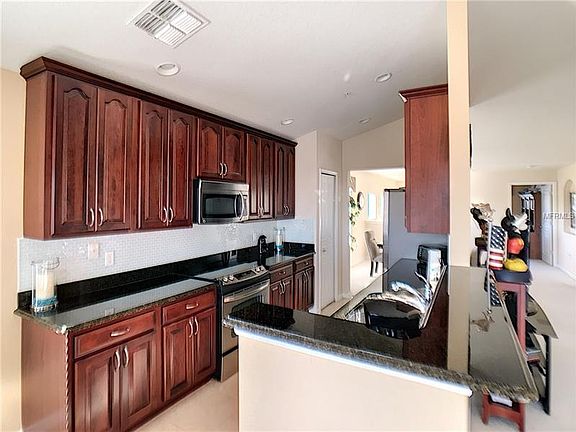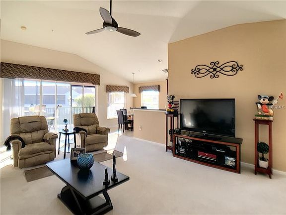 A Unique Spoonbill model with many, many upgrades and likely the best view in the Promenades! If you drive straight in and park on the brick paver driveway, you may not realize how special this unit is. Take a stroll down the sidewalk to the right and over to the bench by the pond. You will see from the below the 2nd-story screened balcony overlooking a beautiful pond with evening fountain with exceptional sunsets. Let's list a few of the features of this immaculately maintained home. First, it is a strikingly bright and breezy home. The rollup blind on the deck cuts the sun when shining directly in during the day. Remote control ceiling fans. Superior window treatments. Self-cleaning water heater. Annoying bushes by the driveway have been replaced with grass at owner's expense. 2 Bedrooms that fit kingsize beds. Washer and dryer in a separate closet in hallway - not in kitchen. Granite countertops, cherry wood 42 inch cabinets with crown molding and tile in all wet areas. The den can be used as an office or temporary guest room. Double pane windows to be installed this spring by the association. If you have read this far, be sure to click the link and check out the 3D Tour. You can move around the home virtually to decide if you want to schedule a showing. And there's more! Living in a Del Webb (NOT 55+) community has it benefits, primarily the lifestyle, security, and access to shopping, restaurants, the theme parks and more. Full-time or snow-birding, you can't go wrong with a Spoonbill in Bella Trae.