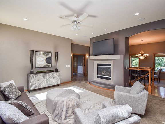 Garden level ranch with so many unique living spaces! Spacious entry flows easily in to the main floor living room featuring a gas fireplace & large east facing windows overlooking the back yard. Large eat-in kitchen with granite counters also has access to a massive covered deck that can also be accessed from the back of the garage. Formal dining room just off the kitchen offers expansive entertaining options. Main floor laundry is a separate room just off the garage entrance. THREE MAIN FLOOR BEDROOMS-front bedroom has vaulted ceiling & double closet, one currently used as an office with wood floors & double glassed doors, master has a walk-in closet, air jet tub, separate shower & two sinks. Lower level has two additional bedrooms, 3rd bath & bonus room for exercise, crafts, movies, etc. LARGE FAMILY ROOM offers plenty of space for game tables, TV entertainment plus a wet bar & gas fireplace. OVERSIZED HEATED garage with floor drains & stairs to the lower level. Privacy fenced yard!