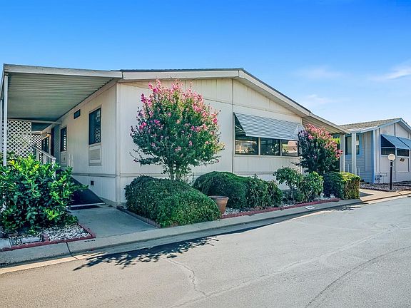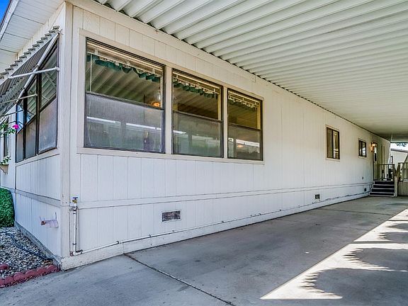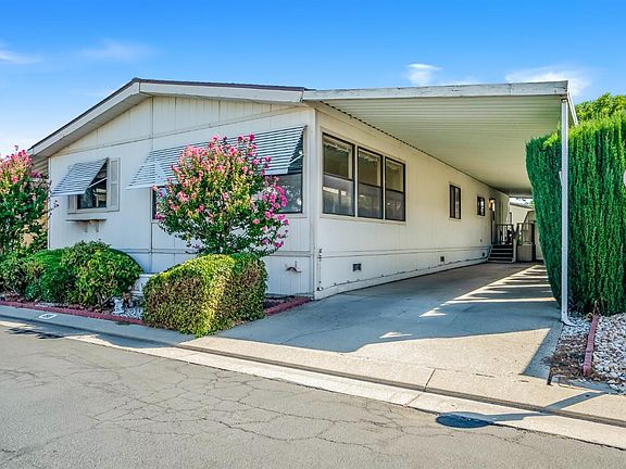 Welcome to Westgate Village this happens to be a 55+ mobile home park. The park has amenities from a private gate, a swimming pool, a club house, and a maintained park. If you been searching for a property with a spacious open floor plan, with lots of natural light, vaulted ceilings, a porch with privacy to allow you to feel the summer or fall breeze, two storage sheds for extra space, and a back yard that contains fruit trees that give an abundance. Well you've stumbled on a property that is waiting to show you its charm. Space number #158 has recently received new installation of new carpet, tile, and a kitchen sink. Don't miss out on this cozy home!