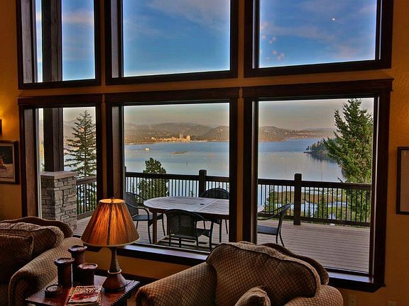Craftsman, Sgl Level w/Bonus Rm Site Built < 2 Acre - Coeur d'Alene, ID Gorgeous home capturing the best views of CDA lake and Resort. Situated on almost 1 acre. This home is located in the gated Heights community at The Ridge of Cougar Bay. Conveniently located 4 min. from town (1.7mi) close to hospitals, shopping and freeways access. This home boasts 6 bedrooms, 8 baths, huge gourmet kitchen, butler's pantry, large stone fireplace, Master steam shower and sauna, swimming pool, guest quarters, wood floors and much more! Ideal home for entertaining and capturing the best views available.
