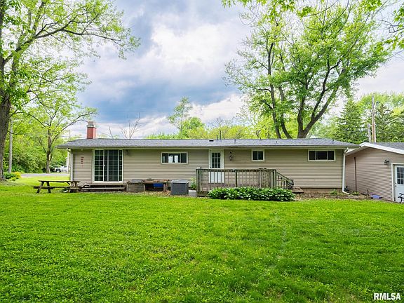Charming 2 bed, 2 bath home with on a large lot in East Peoria School District. Upon entering, you will see the living/dining combo with plenty of natural light. Nice size living room with fireplace and sliding glass door overlooking the large back yard. Main floor living with wheelchair ramp for front door access. Enjoy a private back yard with plenty of trees and a deck to relax. The large lot provides endless possibilities for gardening, outdoor activities, or future expansions. The 2-stall detached garage offers plenty of space for parking and additional storage. Home being sold as is.