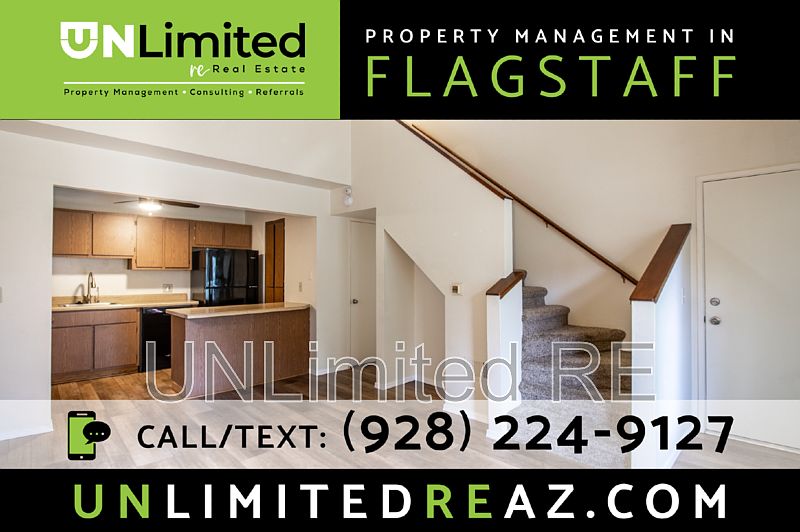 $1700 for first 6-months. $1800 for remaining lease term. 200 yards from NAU! Engage with the charm of mountain living at its finest in this delightful condo at 1200 South Riordan Ranch Street, Unit 56, nestled in the picturesque city of Flagstaff, AZ. This inviting 2-bedroom, 2-bathroom gem offers an expansive 851 square feet of thoughtfully designed living space, perfect for creating your own cozy retreat. The open floor plan seamlessly connects the living and dining areas, making it ideal for entertaining friends or enjoying a quiet evening at home. Large windows fill the space with natural light, offering stunning views of the surrounding Flagstaff beauty, while the bedrooms provide a serene escape after a busy day. Situated in a vibrant community, this condo is just moments away from Flagstaff's rich array of dining, shopping, and cultural attractions. Outdoor enthusiasts will appreciate the proximity to scenic trails and parks, perfect for weekend adventures. With easy access to both urban amenities and natural wonders, this condo offers the best of both worlds. Embrace the opportunity to live in a place where comfort meets convenience, all in the heart of one of Arizona's most beloved cities. Available: Now Lease term: 12 months. (First 6 months $1700/mo, remaining is $1800/mo) Utilities: Tenant pays gas and electric (~150/mo) Pets: No Bed: 2 + Den Bath: 2 Parking: 2 Spaces with a guest spot as well! Heating: gas Cooling: No HOA: Yes Furnished: No Smoking: No Govt. Vouchers: No Security Deposit: equal to 1.5x rent Application: $60/person (refundable if not processed) Administrative Fee: one-time fee, 7% of one month's rent Professional management provided by UNLimited RE. Resident Benefits Package (included in rent) includes renter's insurance, filter delivery, identity protection, rewards, etc.