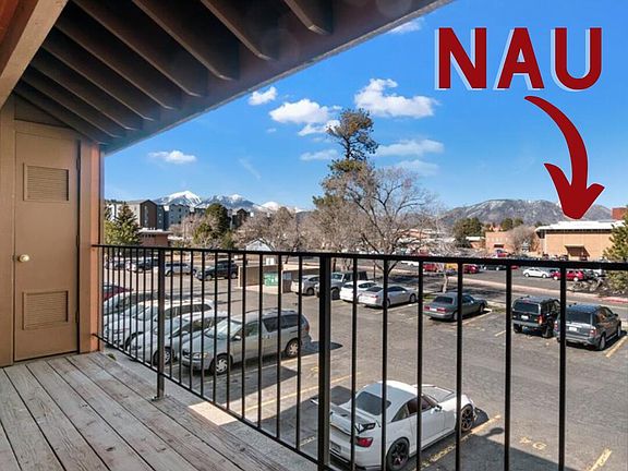LOCATION! LOCATION! LOCATION RIGHT NEXT TO NAU! Super adorable RARE 2 Bedroom/2 Bath Condo in the highly desired UNIVERSITY MEADOWS community overlooking NAU and with amazing views of the San Francisco Peaks! This is the perfect location, NEXT TO NAU residence for students, professors, parents and investors. Complete with vaulted ceilings, washer/dryer hookups in residence, outdoor covered balcony looking out to the NAU campus. Full kitchen with pantry, dishwasher and breakfast bar. Complex also has a full laundry room, green space, covered pavilions with tables, and bbq. Close proximity to Downtown Flagstaff, restaurants and shopping. HOA includes water, sewer, hot water and trash. Buyer to confirm. Tenants lease expires 5/31/2023.