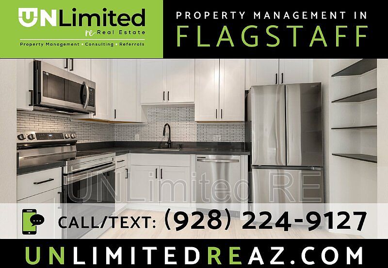 500 Move-in Credit if Move-in is before 1/31/2024** Presenting a charming condo rental steps from NAU at 1200 South Riordan Ranch Street, Unit #122, nestled in the beautiful city of Flagstaff, AZ. This exquisite 2-bedroom, 2-bathroom home offers a spacious 852 square feet of thoughtfully designed living space. Step inside and be welcomed by a bright and inviting atmosphere, perfect for creating cherished memories. With its well-appointed layout, this condo ensures comfort and functionality in every corner. Imagine waking up to the serene surroundings of Flagstaff, where each day is an opportunity to explore and unwind. Conveniently located, this property provides easy access to local amenities and natural wonders near NAU as well as downtown Flagstaff. Whether you're a nature enthusiast or a city lover, this condo offers the best of both worlds. Enjoy the warmth and comfort of your new home, designed to cater to your lifestyle needs. Take advantage of this fantastic opportunity to make Unit #122 your ideal sanctuary in the heart of Flagstaff. Discover the perfect blend of convenience, style, and tranquility in this exceptional condo rental. Top unit, no more noisy upstairs neighbors! This home is freshly renovated with quartz countertops and luxury vinyl planks as well as all new appliances! There is plenty of space to do laundry with a full size washer and dryer. It also backs up to Riordan Mansion Reserve that provides great views. *$500 Move-in Credit if Move-in before 1/31/2024* Available: Now! Lease terms: 18 or 12 months Beds: 2 + Den Bathrooms: 2 Furnished: No Parking: 2 + Guest Spot Utilities: Tenant Pays Electric and Gas (~$125/mo) Pets: No Heat: Gas Cooling: No HOA: Yes Govt. Vouchers: No Smoking: No Security Deposit: equal to 1.5x rent Application: $60/person (refundable if not processed) Administrative Fee: one-time fee, 7% of one month's rent Professional management provided by UNLimited RE. Resident Benefits Package (included in rent) includes renter's insurance, filter delivery, identity protection, rewards, etc.