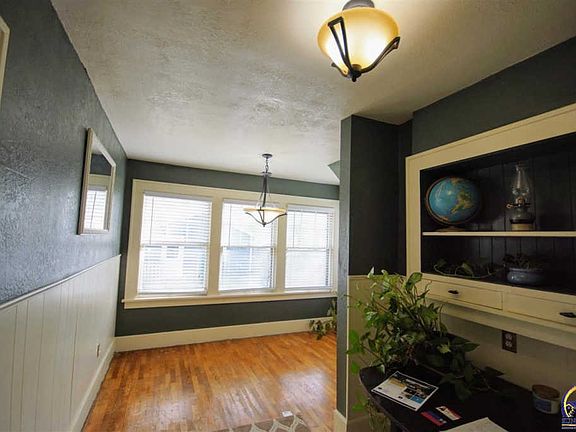 Historic Elmhurst, 2 car detached garage, plus extra fenced parking. Fresh exterior paint, interior paint. Newer 90+ HVAC. Lots of value at the price point. Updated half bath off bedroom and good size full bath on main floor. Functional kitchen + separate dining area/bonus room. Hidden nooks throughout, movable book shelf under stairs, concrete safe room in bsmt x2 and movie area. Fun house and easy living close to many Topeka amenities. Brand New roof. Inspections complete. Great house for the $$.
