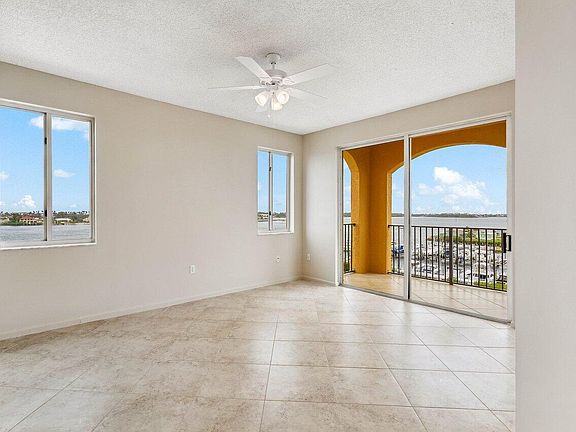 Penthouse, corner unit with DIRECT southeast views of the Intracoastal and Marina. Waterviews from every room! Tiled throughout, high ceilings, open granite kitchen with Stainless steel appliances. FRESHLY painted interior. Impact Glass. Updated Electric panel, 2024 HWH. Washer/Dryer inside unit. Roof assessment will be paid by the Seller. Community is GATED, Building is also secured. Amenities include: Sandy Beach area, Kayak Launch, Kayak Storage, Gym, Sauna, POOL, Dog Park, Billiards. Included in Assoc fee: Exterior Insurance, WATER, Lawn Care. 2 pets ok per association, combined weight of 35 lbs. Parking Space #96, right in front of clubhouse and near front door of the building. Marina next door w Boat Club. Also up for rent if preferred, $2300/month for annual rental.