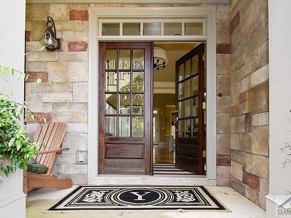 Nantucket-style cottage perched atop a hill with an Athens address in Oconee County. Double doors open onto wooden floors and plentiful windows. On the main floor you have an expansive formal dining room open to both the kitchen via butler's pantry with sink and built-in wine glass holder and formal living room. Kitchen is classic and sophisticated with gas cooking and pot filler and tiled back splash. Kitchen has both an island and breakfast bar plus open area with large windows and room for dining table. Wine fridge will keep both the chef and guests happy. Fireplace in both the living room and owners' suite. The ceiling in the owners' suite is stunning and feels like a high-end resort on Nantucket. Owners' suite bath has romantic soaking tub and dual vanities. Upstairs are three large bedrooms and open loft area. Terrace garden-level is open to substantial paito. Fenced-in rear yard. Home can be secured with all exisiting furnishings in place for an additonal amount.