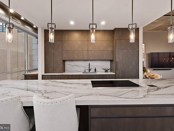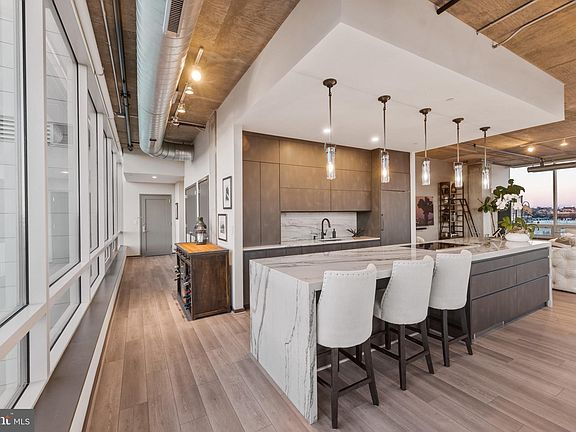 Spectacular and rarely available Silo Point corner condominium with panoramic water and city vistas from East, South and West exposures. This highly coveted two bedroom, two and one half bath residence boasts over 2,400 square feet of living space showcasing many bespoke finishes and dramatic floor to ceiling windows, high ceilings, wide plank floors, Lutron automated blinds, Sonos speakers, designer lighting and private balcony. The expansive living and dining space lead into the open eat-in kitchen with center island great for entertaining and daily living alike. The newly renovated custom kitchen features a 14 foot quartzite waterfall island with double sided cabinets, seamless quartzite backsplash, Leicht architectural cabinetry, Brizo fixtures in soft black matte finish, and top-of-the-line appliances by Wolf and Sub-Zero including a 36-in refrigerator/freezer, 36-in 5 burner electric cooktop with downdraft, wall oven, integrated dishwasher, microdrawer and wine refrigerator. Retreat to the primary suite encompassing floor to ceiling windows with sweeping city and river views. This spacious bedroom includes a custom walk-in closet, linen closet and balcony access. The ensuite spa primary bath features Calcutta vena classico slab feature walls, seamless glass walk-in shower, freestanding soaking tub and quartz double bowl vanity with custom lighting and mirrors. A secondary bedroom with ensuite bath, powder room and utility room with full size washer/dryer and pantry complete this magnificent residence. 2 garage parking spaces and separate on-site storage convey with this offering. Silo Point offers residents full-service amenities; including 24-hour front desk attendant, premier building manager, fitness center with adjoining yoga studio and private treatment room, boardroom, game room and 19th Floor Sky Lounge. Silo Point, once a 1920's grain elevator now 24 stories of glass, steel and concrete. Architecturally unique luxury, waterfront living.