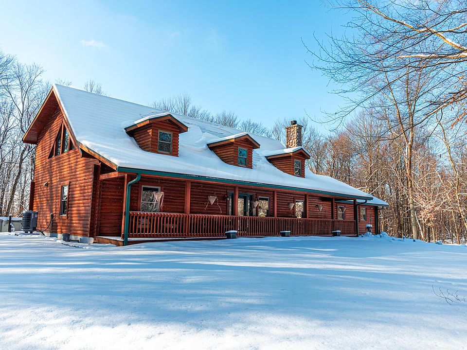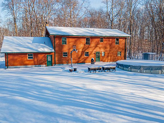 Privately nestled on 20 mostly wooded acres, this alluring 4 bdrm, 3.5 bth Tidewater Red Cyprus Log Home provides a tranquil nature escape. The warm entry invites into an open floorplan w/a soaring ceiling, expansive kitchen island & stone fireplace. The walk-thru pantry/laundry rm adds convenience & organization. Main floor owner's suite features walk-in closet, ensuite w/step-in shower & jetted tub. The loft home office may be accessed from owner's staircase & 2nd floor. Lower level offers 4th bdrm, full bth, 28X19 rec rm & workshop w/access to garage. Some recent updates include 40 yr roof, gutters, chimney cap, heat pump, & garage floor in 2021, & 32x48 barn roof 2019. 2-acre invisible dog fence & pool complete this impressive property.