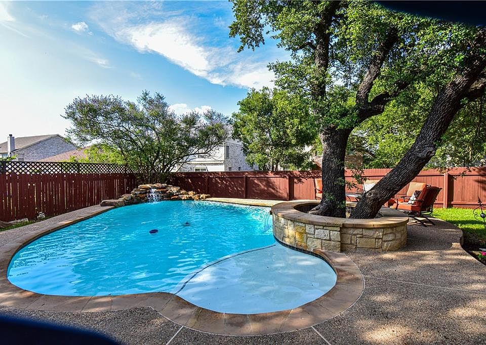 Best price available in Cedar Park for a home this size with a pool. Your back yard oasis awaits, cool off in your own stunning pool or just relax under the shade of the oak trees. Covered patio creates a great entertaining area. Inside there is room for the whole family with 3 living spaces and 4 large bedrooms. The chef of the home will enjoy the large island kitchen with its granite countertops, huge pantry and plenty of cabinet space. Family room includes a wood burning fireplace and is open to the kitchen. Popcorn ceilings have been removed. Upstairs bonus living room can be your own private gym. Ride your bike to top Cedar Park schools. Low HOA fees. Make this beautiful home yours today!