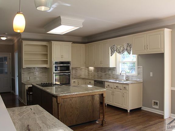 Stunning 4 sided brick ranch in Watkinsville on over 2 acres! 5 BR and 2.5 BR with a gorgeous open floor plan and plenty of extras for entertaining. The irresistible kitchen in all granite has an island, plenty of cabinet and counter space, a butlers pantry, stainless steel appliances, under cabinet lighting and finished hardwood floors. The kitchen is open to the breakfast room, formal dining room and the great room. All the main living areas have finished hardwood flooring. The great room features a masonry fireplace with judges paneling, finished hardwood floors and double doors that open onto the large private deck and hot tub for entertaining. There are french doors leading to the office area that could be used for formal seating area off the dining room. 4 bedrooms are on the main level and the owners suite wing features a cedar lined closet, barn door, double doors that open to the large deck with seating. The owners suite spa-like bath has a tiled shower and glass enclosure, a lavish soaking tub and his and hers sinks. There is a 5th bedroom upstairs that could be used for a bonus room also. There are mature pecan trees, paved walk ways, an over sized 2 car garage, a storage building, and garden areas. This home is in a wonderful location that is very close to the new Presbyterian Village, shopping, Athens Academy and downtown Watkinsville.