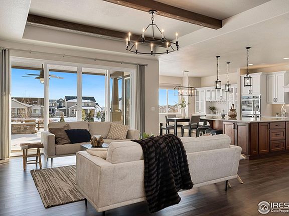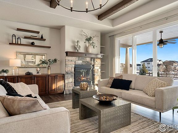 Immerse yourself in the splendor of this exceptional custom home, where breathtaking mountain vistas welcome you! The property borders open space, providing direct access to miles of walking trails, lakes, and a bird sanctuary. Many upgrades in 2023! The open floor plan, featuring a soaring 10-ft beamed ceiling, seamlessly connects the living room, fireplace, dining area, and a chef's dream kitchen. A vast island, quartz counters, upgraded cabinets through the dining room, an induction cooktop with custom range hood, and walk-in pantry define the culinary haven. Step through the dual sliding doors to unveil a backyard haven for entertaining, showcasing an extended covered patio, a gas-piped BBQ area, and a saltwater pool with a push-button retractable cover, inviting you to relax and unwind. The luxury primary suite stands as a sanctuary, offering a walk-in closet, an oversized walk-in shower, a free-standing tub, and a double vanity. The main floor is thoughtfully designed, featuring a custom laundry for added convenience, an office, a guest bedroom, and a bath. Extend the hosting experience to the finished basement, where a rec room and a custom wet bar create a stylish retreat. Two additional bedrooms, a sumptuous bath, ample storage, and an oversized 3-car garage with an epoxy floor, including an enclosed workshop area, complete this remarkable home.