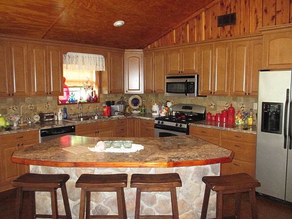 Exterior elevator (solar powered battery). Large covered porch overlooking lake. Insulated windows/doors, very energy efficient.Note: two full baths.