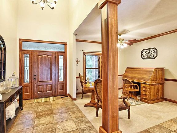 - AMENITIES: Ceiling Fan(s), Detector-Smoke, Porch Covered, Main Floor Laundry, Breakfast Bar, Cable Ready, Eat-In Kitchen, Workshop, 1st Bdrm En Suite, Garage Door Opener, Jet Tub, Patio Open, Formal Dining Room, Main Level Bedroom Suite, Attic-Walk-up, Ceilings-Vaulted, Closet(s) Walk-in, Disposal, Dryer Hook Up Electric, Landscaped, Washer Hook-Up, Home Warranty Included, Twin Sink Vanity, Ceiling-9+, Alarm System-Security, Tub/Shower Combination, Attic Storage, Stand Up Shower, Countertops-Stone, Chair Rail, Kitchen Island, Great Room, Balcony, Crown Molding, Open Floor Plan, Natural Woodwork, Foyer Entry