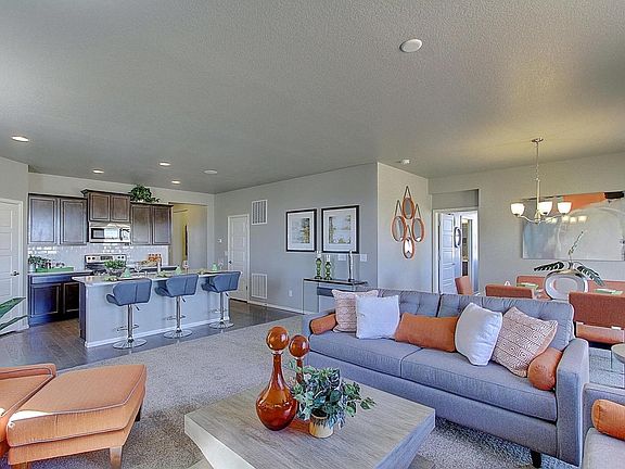 Beautiful open one-story home with 3 bedrooms and two baths. Efficient kitchen with island makes meal preparation and entertaining so easy. Kitchen opens to large living room with gas fireplace. Price includes lot premium, construction selections and Design Center selection of our Classic Granite Package. Front and rear landscaping, sprinkler and fence. All at an incredible price for Broomfield. Make this your new home. 2-10 Limited Warranty. Photos are representative-not of actual home.