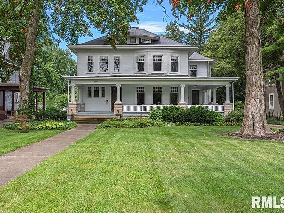 CAPTIVATING WEST COLLEGE ST. PROPERTY - ILLINOIS COLLEGE AREA -A . INVITING PORCH PARTY POSSIBILITIES - IT IS 634 SQ, FT! THIS ONE DOES TRANSCEND ORDINARY - DIFFERNECE IS IN THE DETAILS - THE ARCHITECTURAL MILLWORK IS STUNNING! YOU WILL NOTE IT AT ENTRY - STARTING WITH A GRAND CENTAL HALL - STUNNING STAIRCASE - PRETTY SOLID OAK FLOORS - GRAND ENTRANCE HALL- GORGEOUS SOLID HARDWOOD FLOORS - 4 MASSIVE POCKET DOORS - STRIKING STATEMENT CEILING BEMAS IN FAMILY ROOM + A MASONARY FIREPLACE . FORMAL DINING ROOM IS LARGE & ELABORATE WITH DETAILS & A 2ND FIREPLACE FIREPLACES - 1920'S APPROPRIATE REVOLVING DOOR TO THE BUTLERS PANTRY- IT'S A ROOM -W/ GORGEOUS CABINETS & STUNNING GRANITE-IT'S OPENS TO THE FORMAL DINING RM & THE GOURMET KITCHEN FEATURING VIKING APPLIANCES W/ PRETTY WHITE KITCHEN CABINETS - TOPED W/ MORE GORGEOUS GRANITE +A CENTER ISLAND & NEWER PATIO DOORS THAT STEP TO THE 16X28 DECK - EVEN THE LAUNDRY - IS A ROOM THAT HAS CABINETS & GRANITE. OH MY GOSH! SIDE ENTRY MUD ROOM IS ADORABLE & FUNCTIONAL. LET'S GO UP - SECOND FLOOR: 5 BEDROOMS - MASTER IS MAGNIFICIENT W/H A PRIVATE UPGRADED FULL BATH. 5 BEDROOMS OR AN OFFICE OR A WORK OUT ROOM - YOU DECIDE - A SLEEPING PORCH TOO! A HISTORICAL CARRIAGE HOUSE FEATURES A 14' TURN STYLE - THIS CARRIAGE HOUSE WAS RESOTRED -HOMES EXTERIOR WAS PROFESSIONALLY PAINTED - GEO THERMAL AND INSULATION ADDED AS RECOMMENDED W/ ENERY EFFICIENTY IN MIND-FLOORING UPGRADES - THE CELLAR HAS SUPER HIGH CEILINGS - CAPTIVATIND