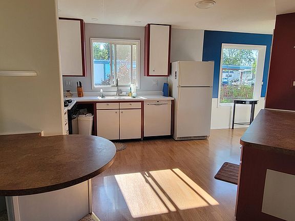 Nicely maintained and updated manufactured home on a pleasant spot in Dimond Estates. Yard backs up to greenbelt. Brand new exterior paint, remodeled throughout in 2020 and 2021. Updated fixtures, flooring, paint, and appliances. Furnace installed in 2019. Arctic entry and large deck increase the enjoyment at this neat and tidy home. Storage shed included.Sheetrock hung during remodel to replace original paneling inside with outriggers installed to support the upgrade. Custom magnetic paneling installed in remodeled bathrooms to provide access to plumbing. Extra insulation throughout.