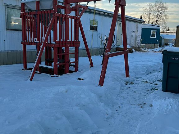 Beautiful 3 bedroom mobile home in Dimond Estates. All laminate floors, new windows, freshly painted, the trailer was leveled and insulated undeneath. New exterior paint. Arctic, entry, washer and dryer, and all other appliances stay. Big storage shed and playground stay. Buyer must be accepted in the trailer park before purchasing. Cash only.