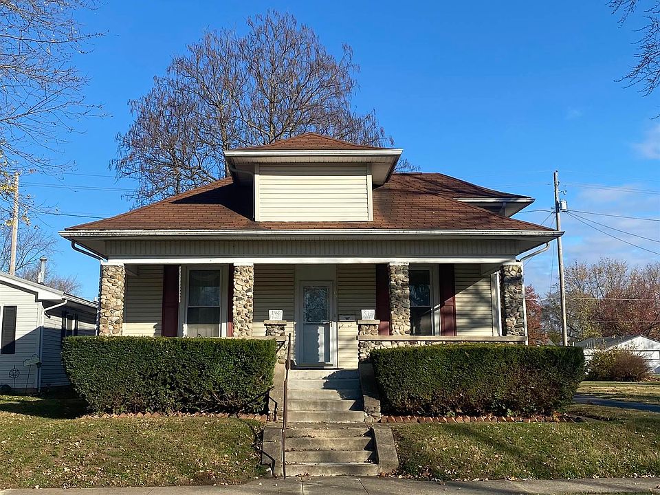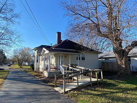This home has been lived in and owned by 1 person for the past 70 plus years. Inside you will find 3-bedrooms and 2 full baths with lots of potential throughout. One bedroom has an attached full bathroom with a stand-up shower and all on the main level. Furnace is approximately 5 years old. There is additional storage in the attic with access thru the bathroom. Take a look at the large yard in the back, detached garage and nice driveway going back to the garage for off street parking. In the kitchen you will find a unique marble-styled fireplace with appliances. This home has a great curb appeal and a nice front porch to sit out on and relax. The home will need updates throughout and is being sold AS-IS.