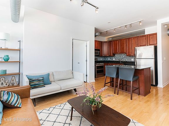 **HEATED GARAGE PARKING & HUGE STORAGE CAGE INCLUDED** Fantastic light filled condo in the heart of the West Loop. Open kitchen features 42" cabinetry, granite counters, mosaic tile backsplash, and stainless steel appliances with a double oven. Large, west facing balcony. Spacious primary bedroom has double closets with customizable shelving, a large en-suite bathroom with a granite topped double-bowl vanity. Fully enclosed 2nd bedroom is currently used as a guest room and office. (The owners have the 2nd br doors if you want to convert the "desk area" back to a closet). Stylish half bath located next to 2nd br. In unit washer and dryer. Low Assessments include: heat, cooking gas, cable including HBO, garbage/recycling, water, 24/7 doorman, workout room, building management, and reserves. Storage #412-approx 8' x 4' x 3'. Pet friendly, Investor friendly, 65% owner occupied. No special assessments planned or pending. Steps to Skinner Park, Mary Bartelme Park, restaurants, cafes, coffee shops. 4 Blocks to Mariano's grocery. Wonderful building and location. A quick closing is possible, if needed.