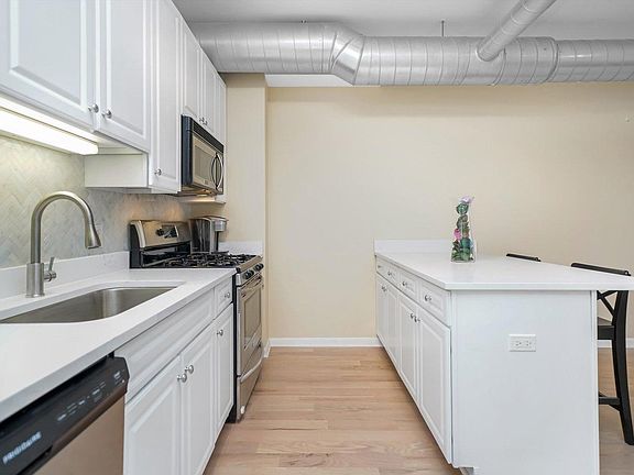 Spotless 2Bed+Den/2Bath condo with sunset views in prime West Loop location! Entertaining is a breeze with your open concept floor plan. The living space is graced with wall-to-wall windows that fill the home with natural light & balcony access. The modern kitchen will inspire your inner chef clad with classic white cabinetry, beautiful countertops, stainless steel appliances and expansive breakfast bar. Private master suite is completely enclosed with a massive attached master bathroom that includes a soaking tub, separate stand-up shower and dual vanity. Spacious second bedroom plus Den that can be used as 3rd bedroom/office space. Other highlights include hardwood floors, loads of closet space, and in-unit W/D. Well managed building with low assessments features 24 Hour Doorman, gym, onsite maintenance & storage. Walking distance to the award-winning Skinner PK-8 Elementary School along with all of the amazing restaurants, nightlife, and parks that make the West Loop so desirable.