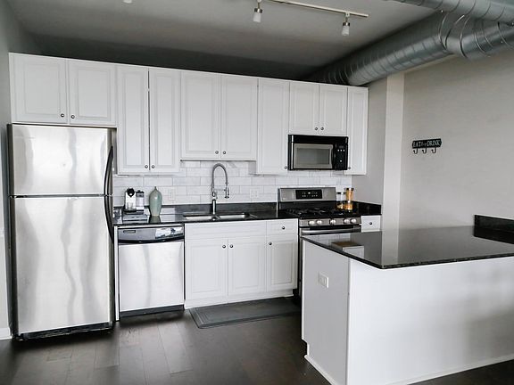 Welcome home to this stunning remodeled WEST LOOP top floor 3-bedroom/2-bath 1200+ sq ft open floor plan condo, which includes 1 garage space in price! Condo has a spacious layout, high ceilings, oversized windows and unobstructed western views with great natural light to enjoy Chicago's spectacular sunsets. Dark engineered hardwood floors newly installed throughout and access to a 15-ft balcony. Both bathrooms were recently remodeled & updated! Kitchen features white cabinets, granite island / countertops & stainless steel appliances. Master bedroom is fully enclosed with THREE closets, upgraded ensuite bathroom with double-sink, stone tiled walk-in glass DUAL SHOWERHEAD rain shower. Large 2nd bedroom has an open concept. The 3rd bedroom can be used as a spacious den or office and features a fully enclosed sliding door. There is also an energy efficient full-size stackable washer/dryer. The Metro is a full-amenity building with 24 hr door staff and a brand new exercise facility. Google Fiber Webpass 1 Gig speed Internet WiFi is included in price. Tenants only pay for electric. Located across the street from the desirable Skinner School / Skinner Park and a short walk or scooter ride away to the best of Fulton Market / Randolph St restaurants, Mariano's, Starbucks, Whole Foods, Target, and Mary Bartelme Park's playground & dog park. Not to mention, you have quick access to CTA, Metra & Expressway! Google Fiber Webpass 1 Gig speed WiFi is included. Tenants only pay for electric.
