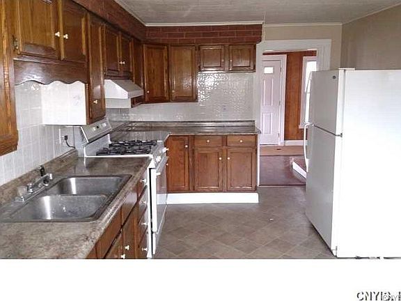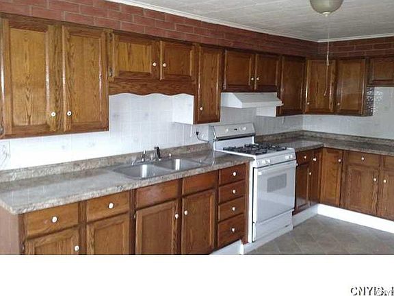 Nice large spacious house with two story garage/barn. Updates include: insulated windows, insulation, natural gas furnace, and hookup for wood/pellet/coal stove. The property is next to school and playground. Would make nice starter home for someone.