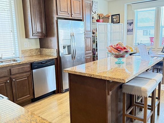 Gourmet islandCute side yardSecurity doorOpen living conceptProducing meyer lemon treeStainless steel appliancesLarge stall shower