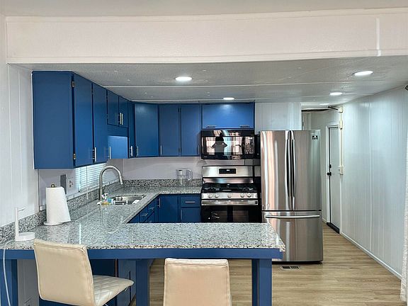Experience affordable living in this updated home. Situated in Hayward Country Club, a 55+ community. New open kitchen that is equipped with a gas stove, refrigerator, garbage disposal, microwave and breakfast bar. **low space rent** $505.98 with a small increase effective in August. Space rent will be $516. Low flow newer toilet and newer shower over bathtub. Convenient Inside Laundry with washer and dryer. Recessed Lighting and New Floors throughout. The exterior of the house boasts a covered carport, new porch, 10X10 storage tool shed, and extensive well-maintained side yards covered with new positano paver. Ample extra storage space under the staircase. Not to mention, the location is prime, with close proximity to Southland Mall, restaurants, and, parks. Enjoy the senior activities in the club house, also you can swim and enjoy the bay area weather. The buyer must be park- approved.