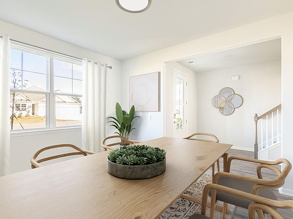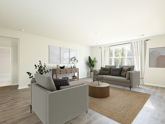 The HALTON is a two-story, two-car garage single family home. The first floor features a flex space, ideal for an office or separate dining, large open living space and kitchen, a back patio, and a guest suite. The second floor features the primary bedroom including a sitting room, two walk-in closets, and a spacious bathroom with double vanities. In addition, there are four secondary bedrooms and laundry room located on the second floor. Photos are a depiction of a similar home.