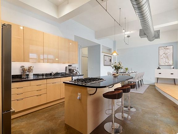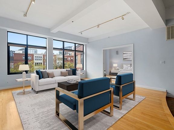 A true bohemian style loft in the heart of the South End. This freshly painted unit boasts a large open floor plan that's complemented with oversize windows to let the light pour in. And the view from the windows overlooks a quiet sanctuary - no traffic noise here! The kitchen is well equipped with a center island that can accommodate four bar stools and has a built in range. Tons of storage is to be found in this kitchen as well. The fridge was replaced in 2020, a new microwave in 2019 and new dishwasher in 2018. The pocket doors in the living room lead to the main bedroom with walk in closet. The second bedroom has an ensuite bath. The second bath has two sinks and large walk in shower. The unit is complete with a separate office area, garage parking, in unit laundry and central a/c. Walk to all the South End has to offer - Meyers and Chang across the street and Whole Foods is a 5 minute walk away. A location that can't be beat!