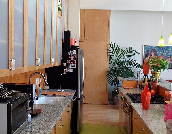 2 bed 2 bath SOWA loft with private balcony at the Laconia. This fantastic artist's loft boasts pristine oak floors, tons of closet+storage space, small office, modern granite and stainless kitchen and many custom details. This unit can be available as a partially furnished short term (3-6 months) or long term (12 months) rental and includes garage parking + common roof deck w panoramic city views. Tenant pays full fee. Must see