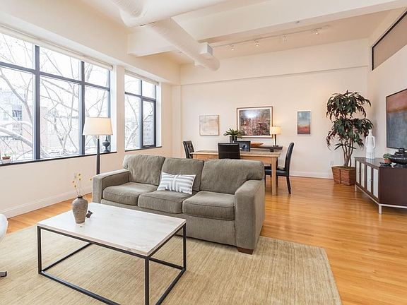 Soaringly Superb Classic Loft. Everything is just where it should be in this custom designed home. A dramatic wall of windows, with custom blinds, lights up the living and dining areas which then flow perfectly into the open kitchen. The kitchen features cider maple Schrock cabinetry and a large granite island. The interior bedroom has a walk-in master closet, and there is an additional room for an office. The nicely appointed bathroom features glass tile and separate WC area. One FULL direct elevator access garage parking space is included, as well as a HUGE common roof deck and garden area. Entering from Harrison Ave. is a gallery that is part of the SOWA arts district. The "Laconia Lofts" is a quick walk to all the shops and restaurants, with easy access to highways, airport, and the MBTA. Professionally managed building with on-site superintendent Open House Sunday February 14th 1-3pm . Offers, if any, due Tuesday, Feb 16th 5pm. THIS is quintessential city living!