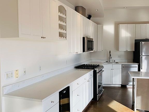 Freshly painted throughout with crisp white kitchen cabinets, all new white quartz counters, stainless steel appliances and bathroom vanities! Don't miss out on this stunning custom designed loft unit in SoWa district's sought after Laconia Lofts. A sun-drenched southeast facing unit with 8 large windows has an oversized kitchen with built-in banquette plus dining area and a king-size master with a large walk-in master closet. Additional features include high ceilings, C/A, in-unit W/D, custom built-ins, recessed lighting, excellent storage/closets, rainfall shower with separate Jacuzzi tub and double sink vanity, double-sided gas fireplace AND one garage parking space. Professionally managed elevator building with common roof deck and grill. Enjoy being steps to the Ink Block with Whole Foods, Tatte, CVS, Bar Mezzana, CorePower Yoga and more! The South End's best restaurants, shops & galleries at your fingertips! Heat, hot water & gas included in rent. Available now and easy to show!