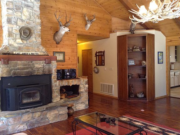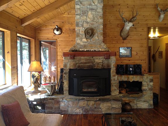 Location, Location, Location Private 4BR + 2BA + Den, 2,538 sq.ft. home surrounded by beautiful trees mountain get-away on 2 lots. Wonderful views & close to 'Woodland Waterfall' trail. Tile counters, bay windows, sliders & a rock FP. Lower level has a den w/ pellet stove & deck. Incredible opportunity. $449,000