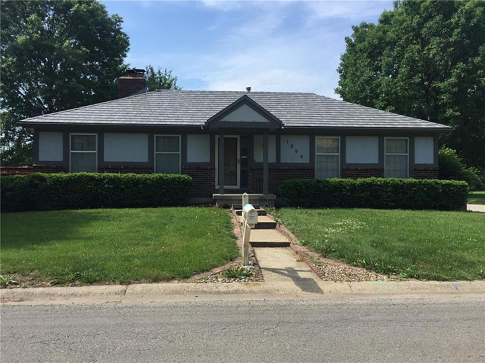 Ranch home sits on quiet corner lot a block away from state route 7 highway in Pleasant Hill, MO. Walk in to an open living room to kitchen with brick, gas start, wood burning fireplace. Home offers large walk-in laundry room, 3 bedrooms & 1 full bathroom on main level. Basement features 2nd fireplace, family room, workshop, utility room, walk out & 2 car garage. Home has metal siding & roof, newer & taller garage doors, deck with stairs to patio/driveway. Driveway added onto allowing extra parking. Selling "As Is"