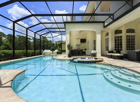 This exquisite property is one of the most private in the whole of Reunion Resort. It has 7 beautiful bedrooms, & 6 bathrooms. This custom home provides luxury upscale living accommodation with its completely private, enclosed pool area, with garden and lake views & summer kitchen. It has an atmospheric theatre room that has 10 reeling seats & a games room with pool table & foosball. As you pull up onto your private driveway, you will be met by the impressive portico entrance. The double front doors open up onto a majestic entrance hall flooded with natural light from the huge arched windows, which is then reflected throughout by mirrored alcoves and furniture. To your right, there is a beautiful Venetian glass dining table, which seats up to 12. Directly ahead, terrace doors open up onto the pool area. In fact, windows and patio doors run the whole length of the back of the property facilitating views/access to the pool wherever you are on the ground floor. All of this luxury is within the beautiful gated Reunion Resort with its three championship golf courses, water park, restaurants and within 5.5 miles of Disney. This property is zoned for short term rentals and is hugely successful with many in place, which can be transferred to the new owners if required. This spectacular home complete with Harry Potter bedroom has to be viewed to be fully appreciated.