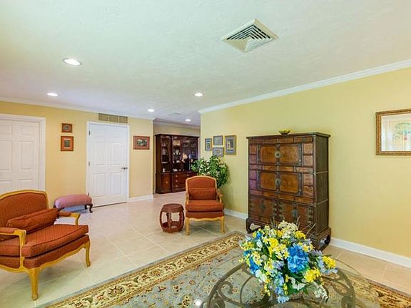 This home was totally renovated in 2007 to new code along with an addition of 1200 heated square feet plus a 720 square foot patio all under the main roof. The addition has an open feeling with 10 foot ceilings and French doors opening to the patio and the water. The huge family room opens to the kitchen and wrap around bar on one side and the patio and water on the other. The master suite also has the 10 foot ceilings with French doors leading to the patio and the water. There is also a spa bath tub, separate shower, his and hers granite vanities and a very large walk in closet. The updated kitchen also has wood cabinets and granite counter tops. All rooms have beautiful crown and base moldings. The home has tons of storage. Note that this home has a larger than normal lot on Treasure Island. It is 75 x 120 or 9000 square feet.