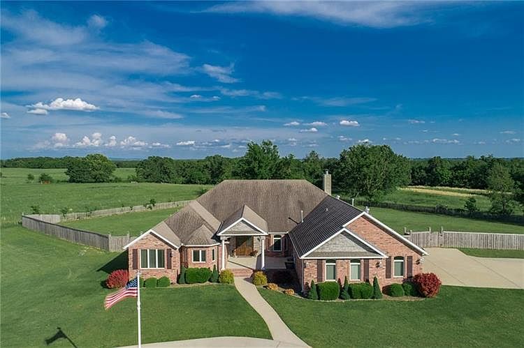 Estate Home on 10.48 acres with Barn. Amenities galore in this beautiful, quality built, single level home. Open, split floor plan with two large living areas; walnut hardwood floors; dining room; oversized master suite; office; kitchen w S S appliances and pantry; mud utility room; and extra-deep 3-car garage. Enjoy sunsets from the covered patio. Detached 64 x 51 barn with two large, overhead doors, restroom, tool room, wood burning stove and outdoor fire pit.