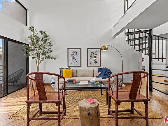 This bright and sophisticated 2-bed, 3-bath top-floor, front-facing corner unit offers the perfect mix of comfort, privacy, and style. High ceilings and large windows fill the home with natural light, while the open layout is ideal for both entertaining and everyday living. Each of the two bedrooms functions as a primary suite, complete with a walk-in closet and en suite bath for ultimate privacy, with one conveniently located on the main level and the other upstairs, plus a powder bath for guests. The kitchen opens to the living and dining areas and extends to a private balcony, perfect for morning coffee or evening relaxation. Upstairs, the spacious and private rooftop deck provides the perfect setting for outdoor dining or lounging under the stars. Additional highlights include in-unit laundry, gated parking, and access to the building's fitness room. Located just moments from Brentwood's best shops, restaurants, and cafes, this home combines modern design with an unbeatable location.