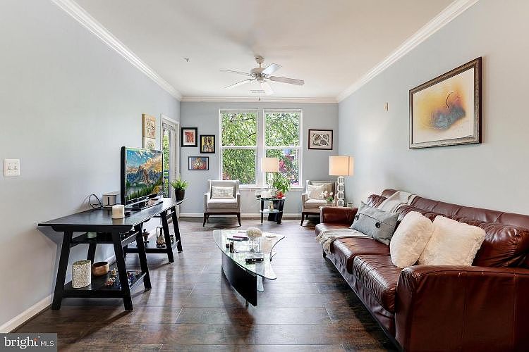 Beautifully updated 1 bedroom with view of pool! Open floor plan with crown molding and gorgeous hardwood flooring in foyer, living room, and dining room. Kitchen features granite countertops, breakfast bar, and stainless steel appliances. Primary suite offers dual closets and SGD with access to balcony. Full sized washer dryer in unit. One garage parking space. New water heater. Private balcony overlooking pool and courtyard area.