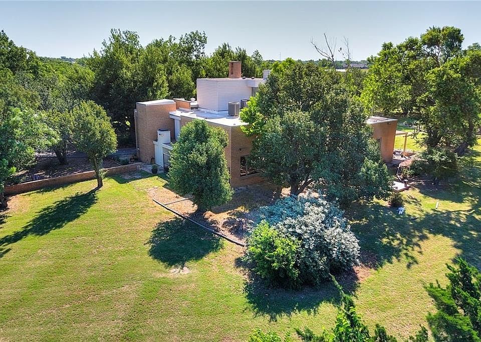 Beautiful 10 acre wooded serene estate that is completely hidden from Council Road & NW 122nd. Main features of this breathtaking estate include a pond, concrete slab barn, custom paved drive, inground storm shelter, remote secured access, and 5,500 sq ft Contemporary home. It is multi level with bedrooms on the second and third floor. The master bedroom/bath is located on the first floor. There is an adjoining study with fireplace. The covered patio has stone flooring and patio space is available on the rooftop as well. The large open kitchen is stunning with black granite, solid wood cabinetry and trim. There is a custom wine bar for two right off the kitchen with cabinetry and built inside. This home has three living areas.