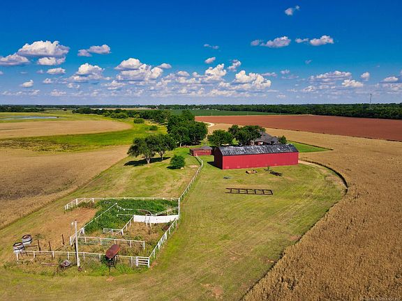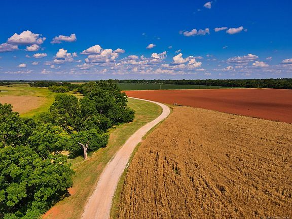 Tillable farm with 70 acres of upland and 35 acres of bottomland this farm offers the ability to provide generous crop rotation. 3 bedroom, 2 bath home is an open concept with plenty of windows to provide ample interior light and exterior views of the farm. Large mature trees provide a canopy for the outdoor patio area. Multiple access points from the outside into the main living areas for easy accessibility throughout the home. 170 +/- acres Total, Appx 3,300 ft of Washita River frontage