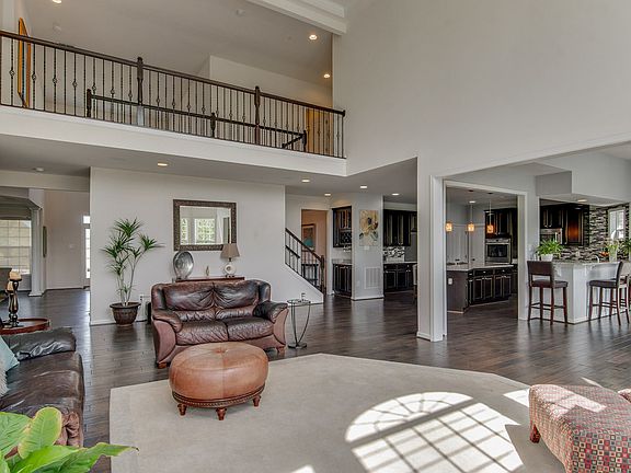 Amazing Caruso Kingsport model located in the premiere community of Woodmore South - a luxury lifestyle home and neighborhood offering the outstanding details and amenities you have been looking for. This beauty is sitting at the top of the cul-de-sac on a 1+acre lot with beautiful brick front elevation and side load garage. Hardwoods* flow throughout the main level accentuating a 2 story foyer, dramatic 2 story family room with wall of windows plus a cozy fireplace to warm things up! The stunning gourmet kitchen with stylish cabinetry, large island, stainless steel, and granite add to the ambiance. Master bedroom suite with luxury Carribean super bath. 3 additional generously sized bedrooms - 2 with buddy bath and 1 with it's own bathroom. Fully finished walkout basement with full bath and theatre room is great for entertaining and family fun. 9" ceilings on all levels. Only 8 homes on this cul-de-sac all on large lots. Come home and begin making memories. Don't miss this one!
