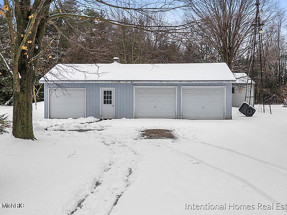 This fabulous 4 bedroom 2 bath Farm House is nestled on almost 4 acres, complete with a 3 car garage, a large Pole Barn and a gorgeous Red Timber frame barn. This property is your gateway to country-life and convenient to US-131. You will find wildlife, Oak/Pine/Cedar Trees and Maple Trees which the the owners have tapped for syrup. There is a fenced-in 50'x90' garden, apple trees and newly built chicken-coop. The Pole Barn has an insulated Office Area. Home includes a Stand-by Generator. Seller Reserves Washer and Dryer