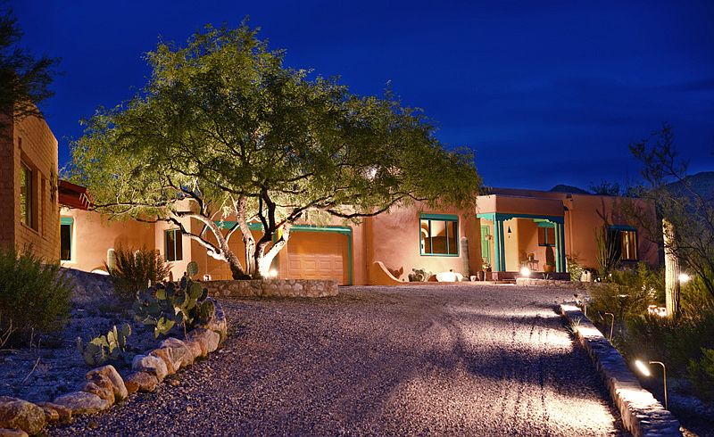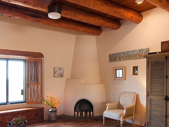 TRULY ENJOY THE TUCSON LIFESTYLE! This move-in ready Santa Fe is surrounded by 3.2 mountain-view acres. Meticulously maintained and completely updated, it features 4 fireplaces, nichos, viga beams, latillas shutters and cabinet doors, hand-carved corbels, and Mexican tile. The property consists of a 2 BR main house plus a charming 1 BR guest house. Classic finishes merge with modern elements such as stainless Bosch appliances and open concept living/dining area. Perfect for entertaining! Built by a well-known Tucson furniture maker, quality is evident with custom alder doors, cabinets and spacious closets. Polished concrete and easy-care saltillo tile floors throughout. Huge artist's studio is suitable for sculpting, wood-working, painting...anything! It includes 220 elec., workbenches, vice, plentiful windows and lighting. It is pre-fit and designed for conversion into a luxurious master suite someday. Preliminary building plans are available.