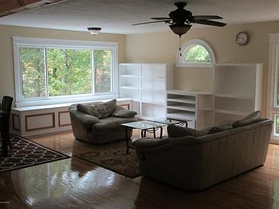 Welcome Home to your place in the woods. A private drive takes you up to your ranch style home. New roof, new windows, BEAUTIFUL Hardwood floors throughout kitchen and living areas. The Great Room greets you with a view out to your 6.4 acres of bliss. 4 bedrooms and 2 baths and a walkout round out your new home. Three stall garage. Also an out building that could have many different uses. A studio, a gardening center...your choice. Call for your tour of this extraordinary home.