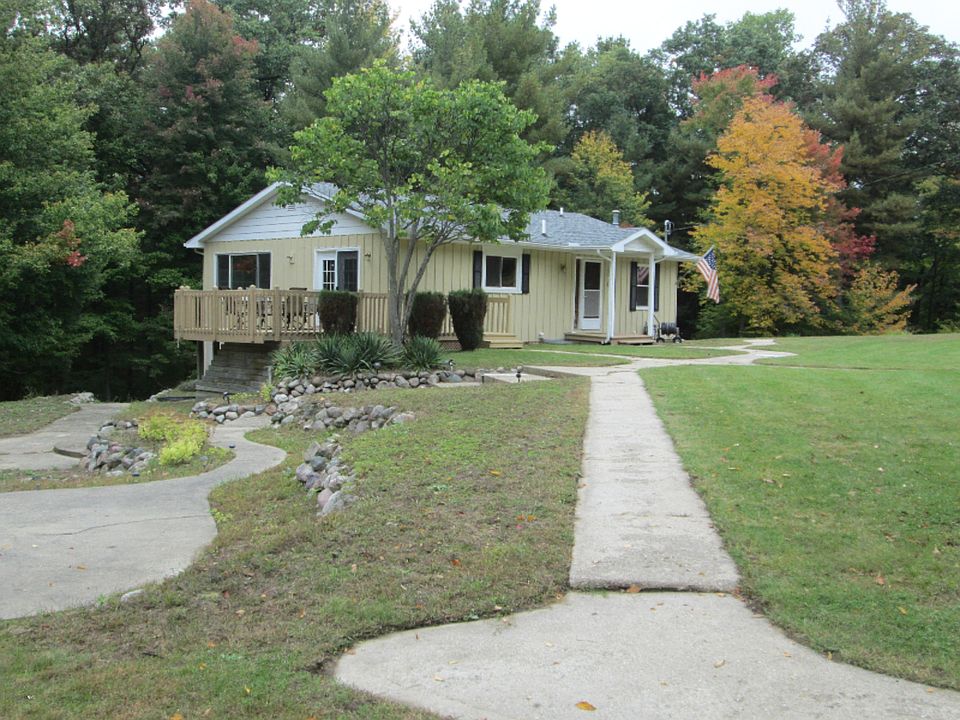 Welcome Home to your place in the woods. A private drive takes you up to your ranch style home. New roof, new windows, BEAUTIFUL Hardwood floors throughout kitchen and living areas. The Great Room greets you with a view out to your 6.4 acres of bliss. 4 bedrooms and 2 baths and a walkout round out your new home. Three stall garage. Also an out building that could have many different uses. A studio, a gardening center...your choice. Call for your tour of this extraordinary home.